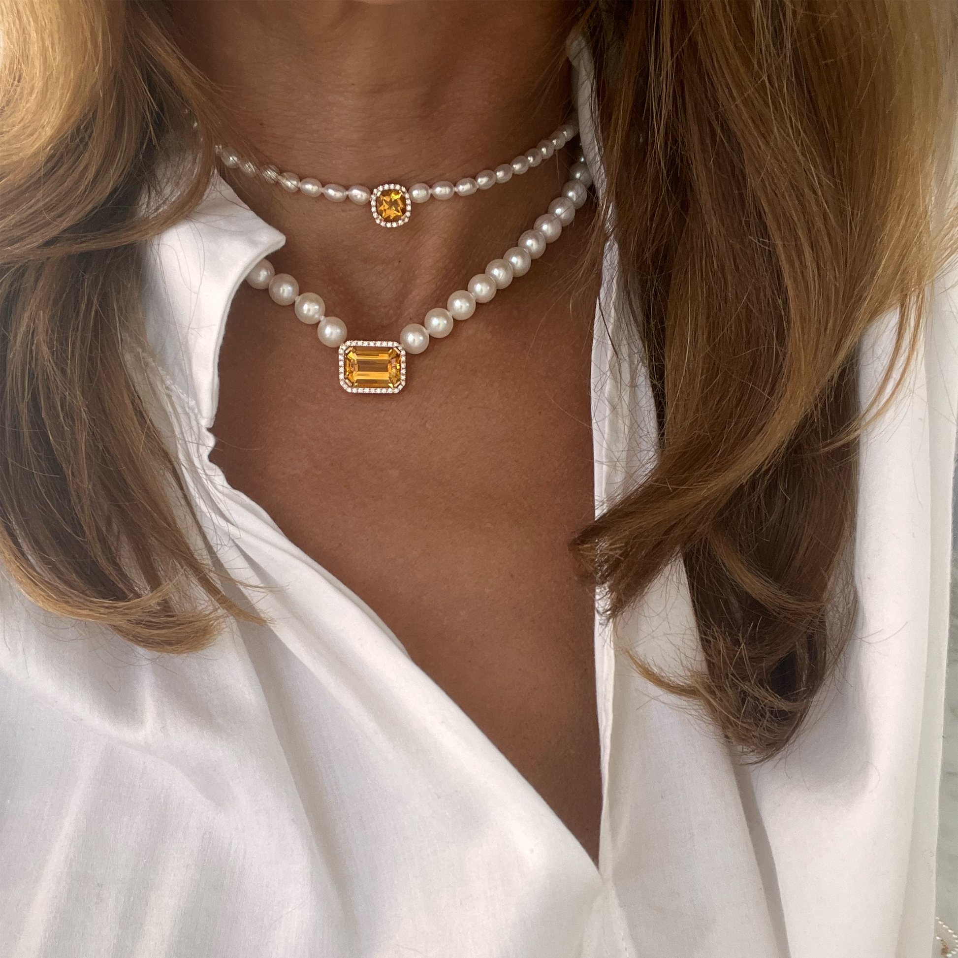 Illuminate any ensemble with our Baby Pearl Necklace, crafted in 18kt gold by the finest artisans in Antwerp. A single, dazzling gemstone takes center stage, embraced by a delicate halo of diamonds, suspended on a string of small white pearls. Versatile and captivating, this necklace effortlessly elevates any outfit, ensuring you shine wherever you go.