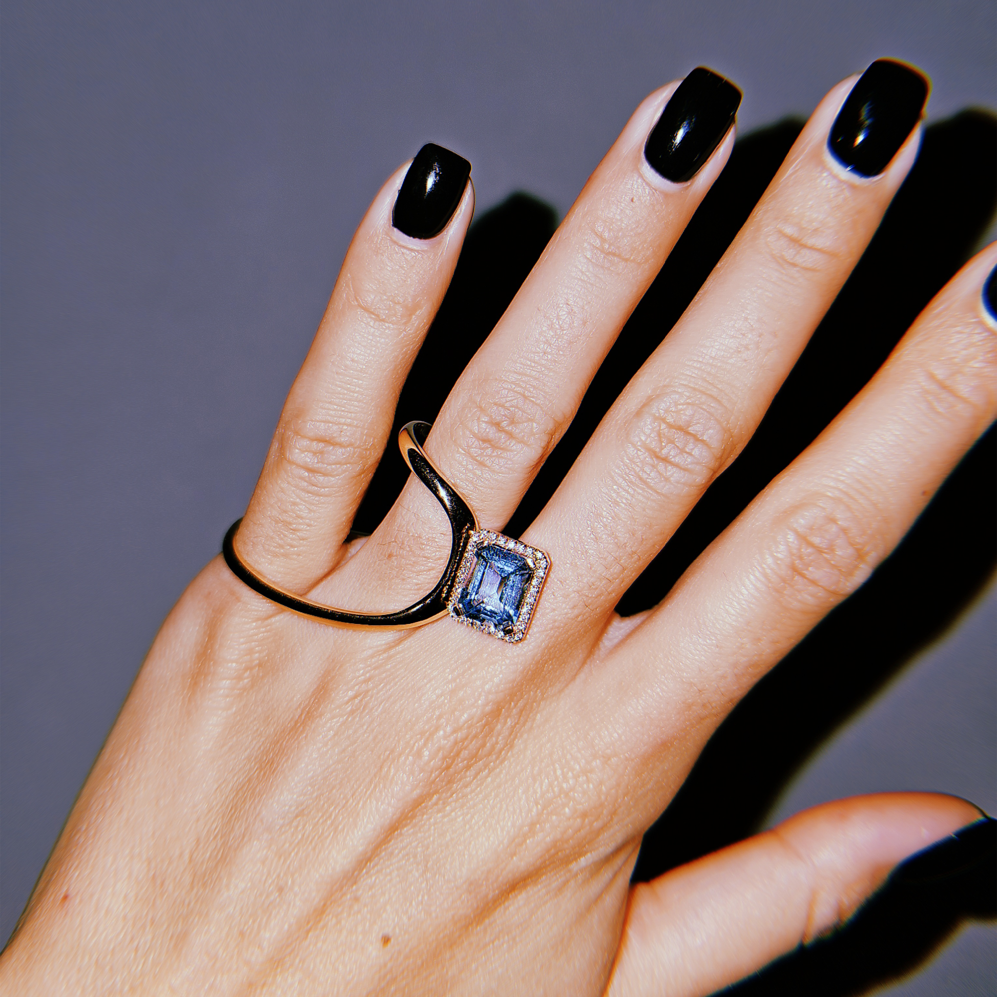 In the vast expanse of the universe, where stars dance in an eternal ballet and planets waltz in their cosmic orbits, Isabelle found her muse. The Cosmic Ring is a testament to the profound beauty and mystery of the cosmos. This 18kt gold ring is designed to be worn on two fingers. Isabelle embarked on a journey through the night sky, seeking inspiration among the constellations and galaxies. The Cosmic Ring is a delicate yet bold piece, capturing the essence of a planet's elegant journey through space. The design emulates the fluid, graceful motion of an orbit, with each curve and twist meticulously crafted to mirror the celestial paths. The central gemstone, a luminous orb, represents the planet itself, shimmering with the brilliance of a distant world.