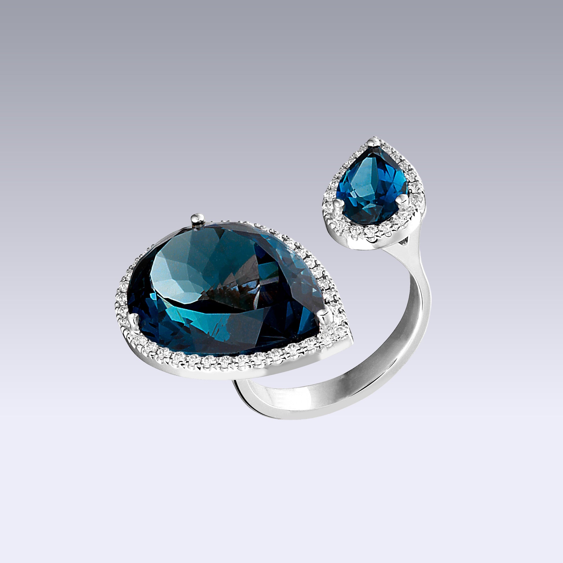 Make a bold and unmistakable statement with our Double Drop Ring, a masterpiece that commands attention. This opulent ring features two grand gemstones, each a magnificent focal point, exuding an air of regal splendor. The sheer size and brilliance of these gems elevate this piece to the status of a statement ring, capturing the essence of luxury and sophistication. Crafted with precision and set in a lavish display of 18kt gold, this ring is more than an accessory, it's an expression of confidence and individuality.