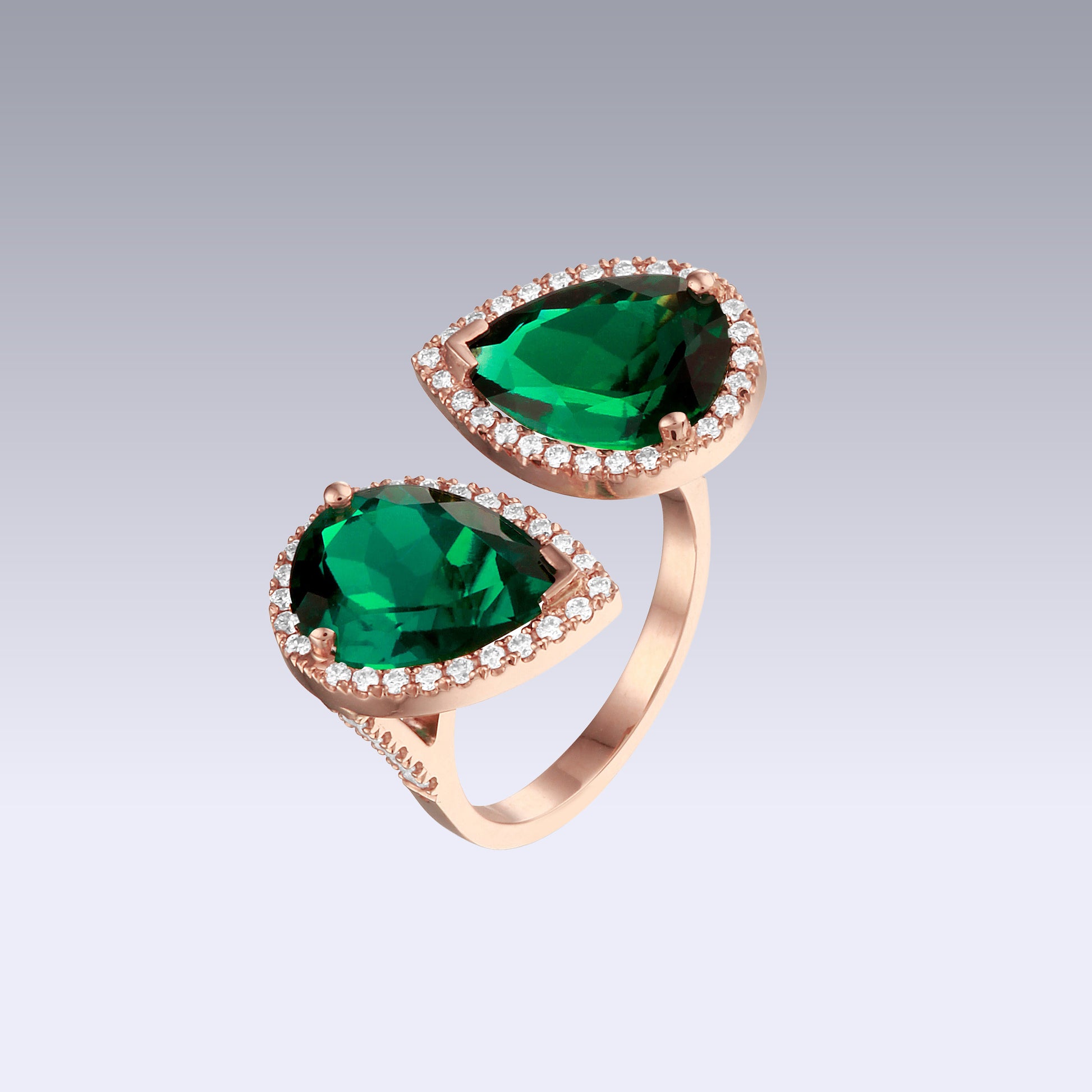 DOUBLE TEAR RING emerald