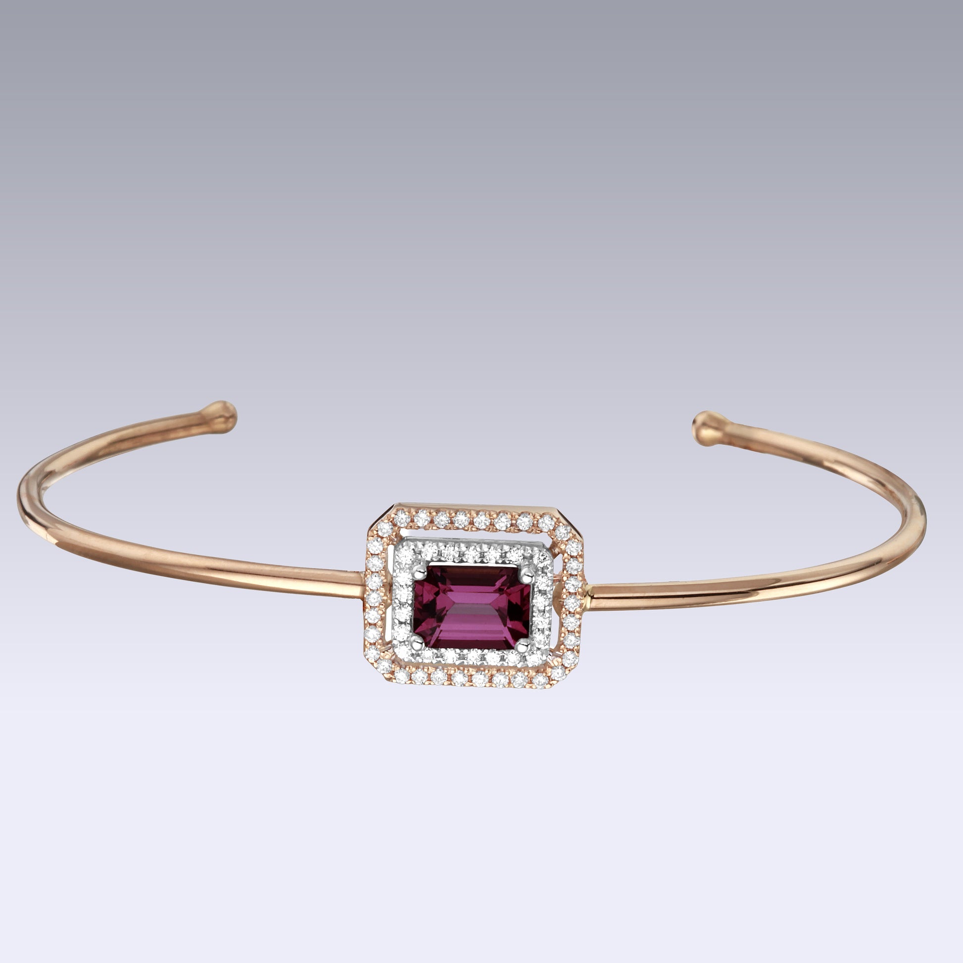 Introducing the Eternal Bracelet, a timeless symbol of enduring beauty and grace. Crafted in Antwerp, this 18 kt gold masterpiece features a captivating center precious stone, embraced by dual layers of exquisite diamonds. The first layer is made of white gold and the second layer is made of rose or yellow gold. The brilliance of the carefully selected gemstone is enhanced by the radiant halo, a seamless fusion of two layers of diamonds that gracefully frame the centerpiece.