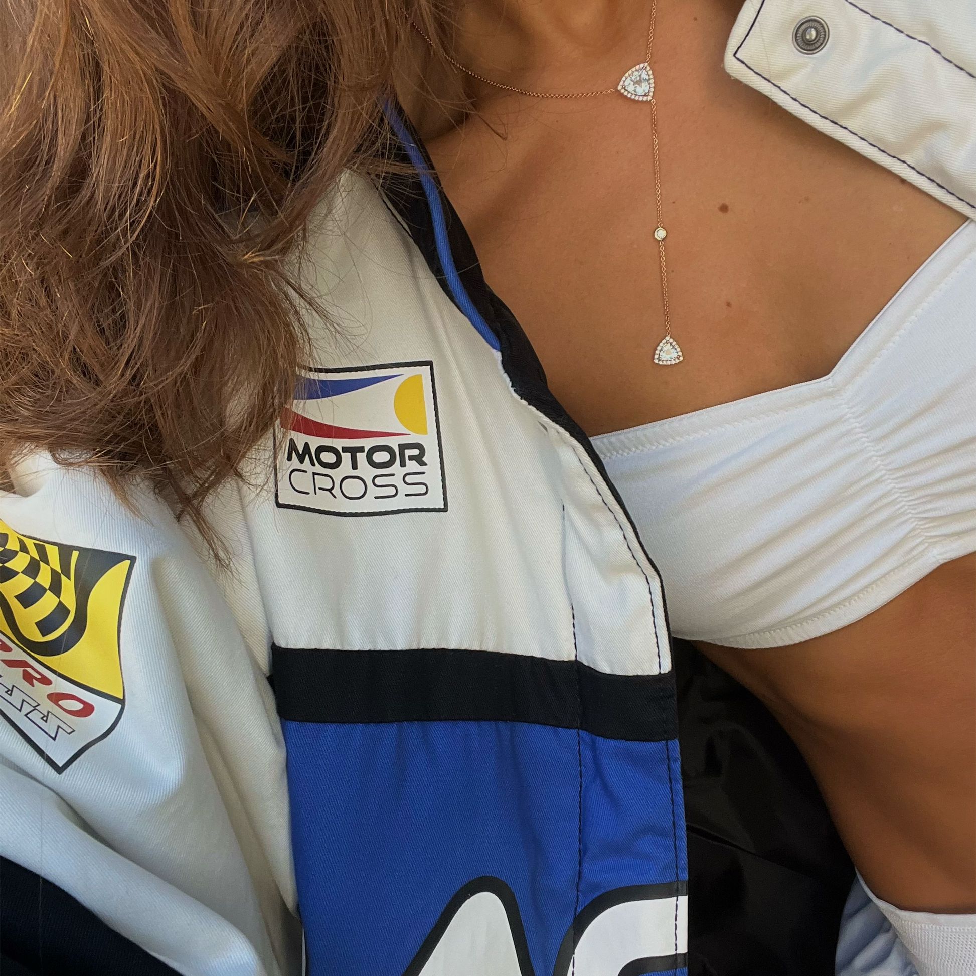 Elevate your style with our Isabelle Triangle Necklace, a mesmerizing union of two exquisite triangle-shaped gemstones delicately poised above each other. Handcrafted in Antwerp by our skilled artisans, this necklace features a fine 18kt gold chain, seamlessly connecting the two precious gemstones. The upper gemstone, carefully selected for its exceptional quality and radiance, captures the essence of celestial beauty. Positioned just below, the second gemstone adds depth and allure, allowing this piece to dance with every movement.