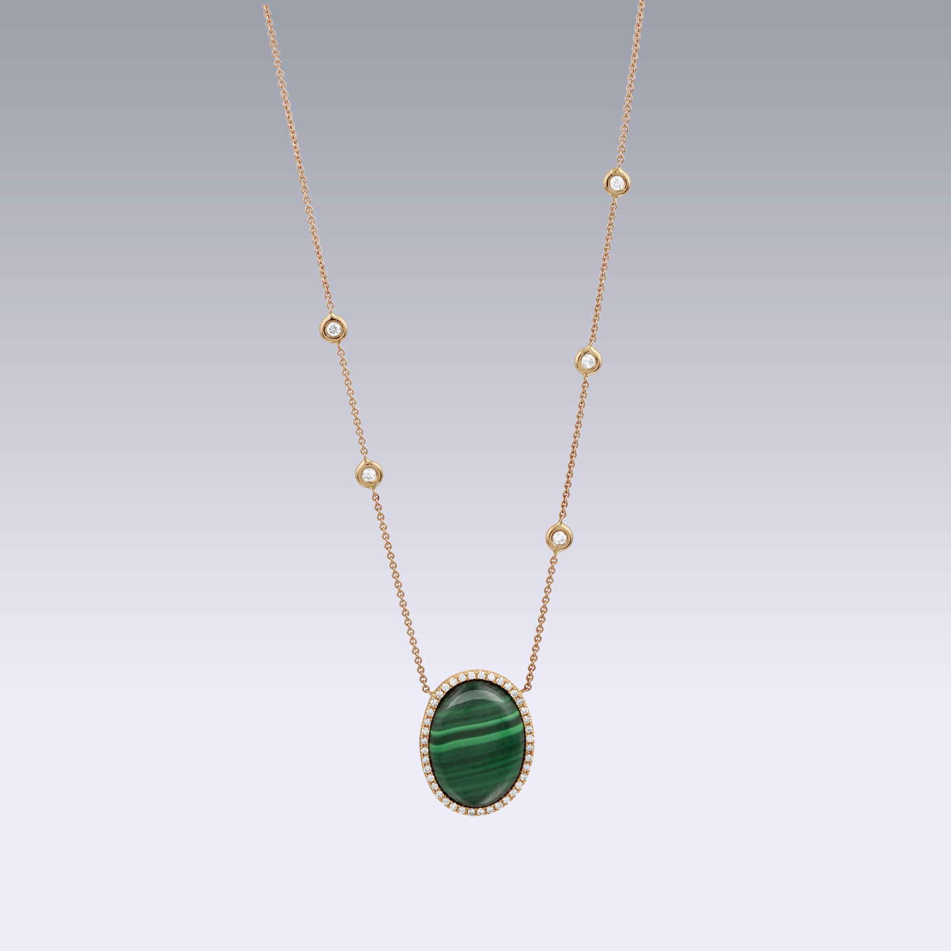 Embrace the protective energy of the Mauranne Necklace. Centered around a powerful malachite, renowned for its ability to absorb negative energies and pollutants, this necklace is adorned with a halo of diamonds. Crafted in 18kt gold by the finest artisans in Antwerp, this piece not only enhances your style but also serves as a symbol of safeguarding your well-being. Let the Mauranne Necklace stand as a unique and elegant shield against negativity, a reflection of both beauty and resilience.