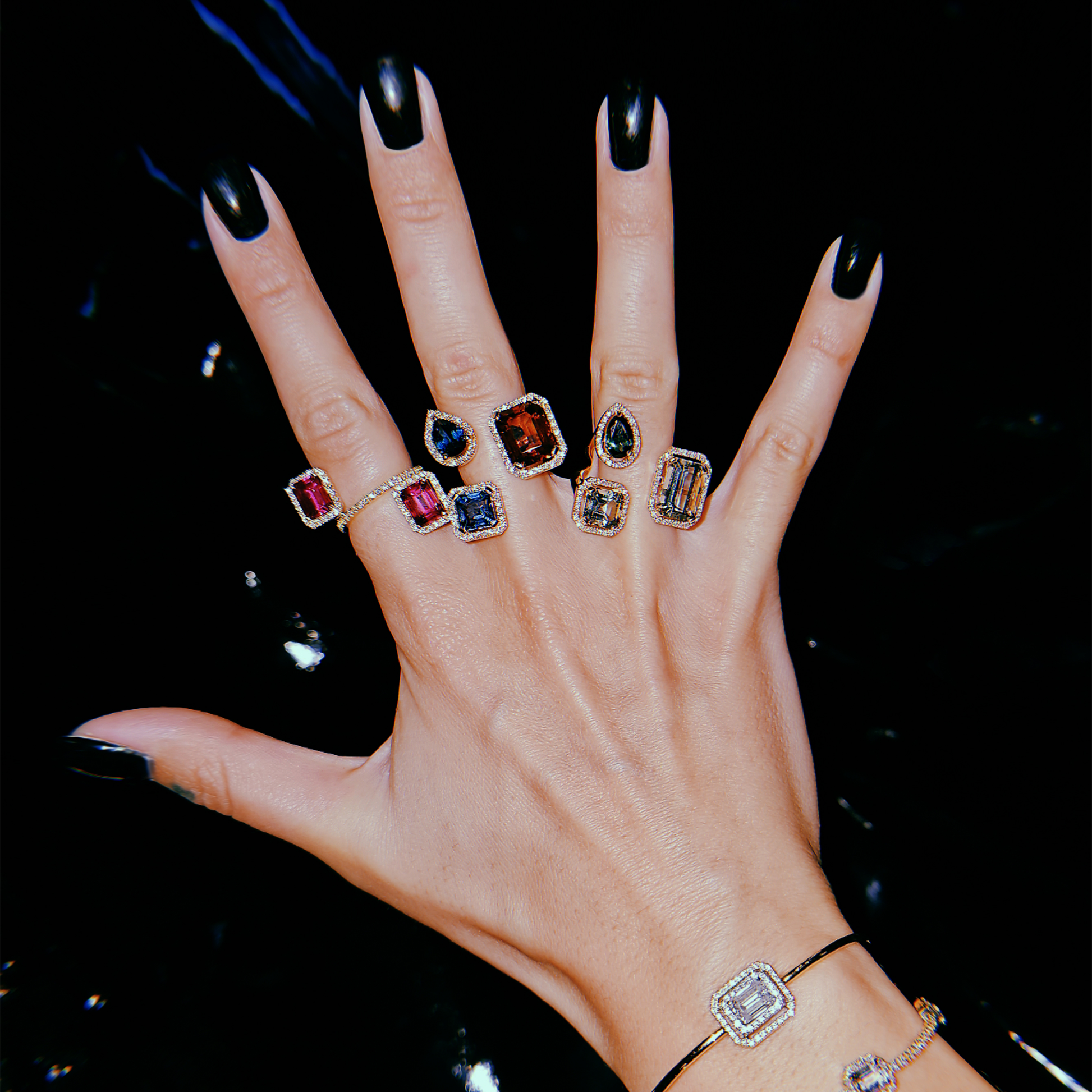 Witness the symphony of colours in our Triple Velvet Ring, where three sparkling gemstones seem to float on the hand, coming together in a perfect concert. The seamless blend of different enchanting hues enhances the allure of each stone, creating a captivating dance of light and color. Meticulously crafted in 18kt gold, this ring is a celebration of the exquisite artistry that transforms a trio of gemstones into a harmonious masterpiece. Embrace the balance and brilliance of this unique creation, where the combination of colors elevates the whole to an extraordinary level of sophistication. A tribute to impeccable craftsmanship.